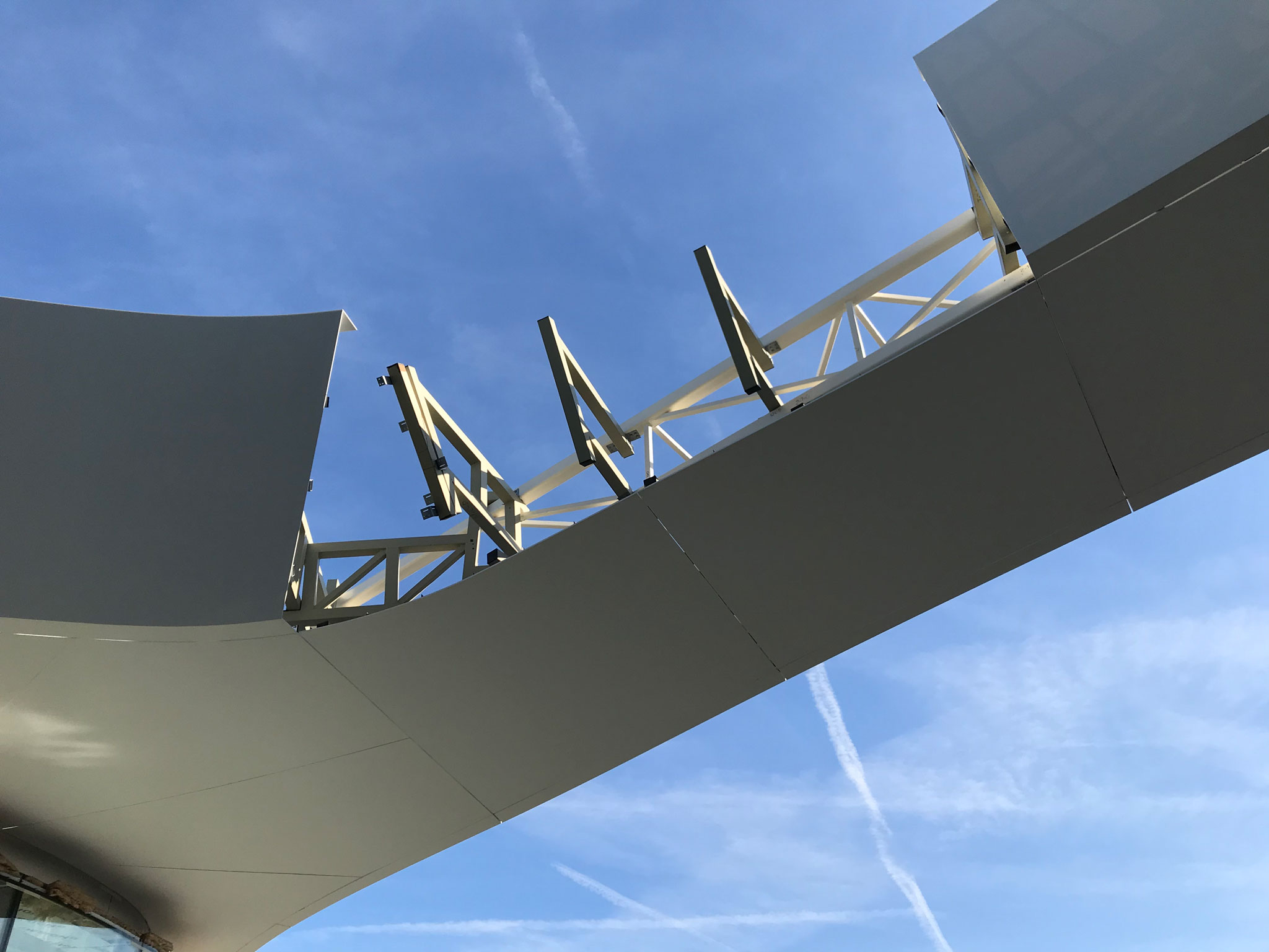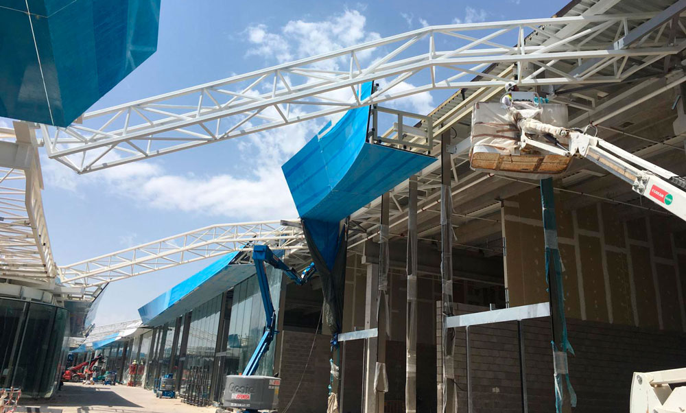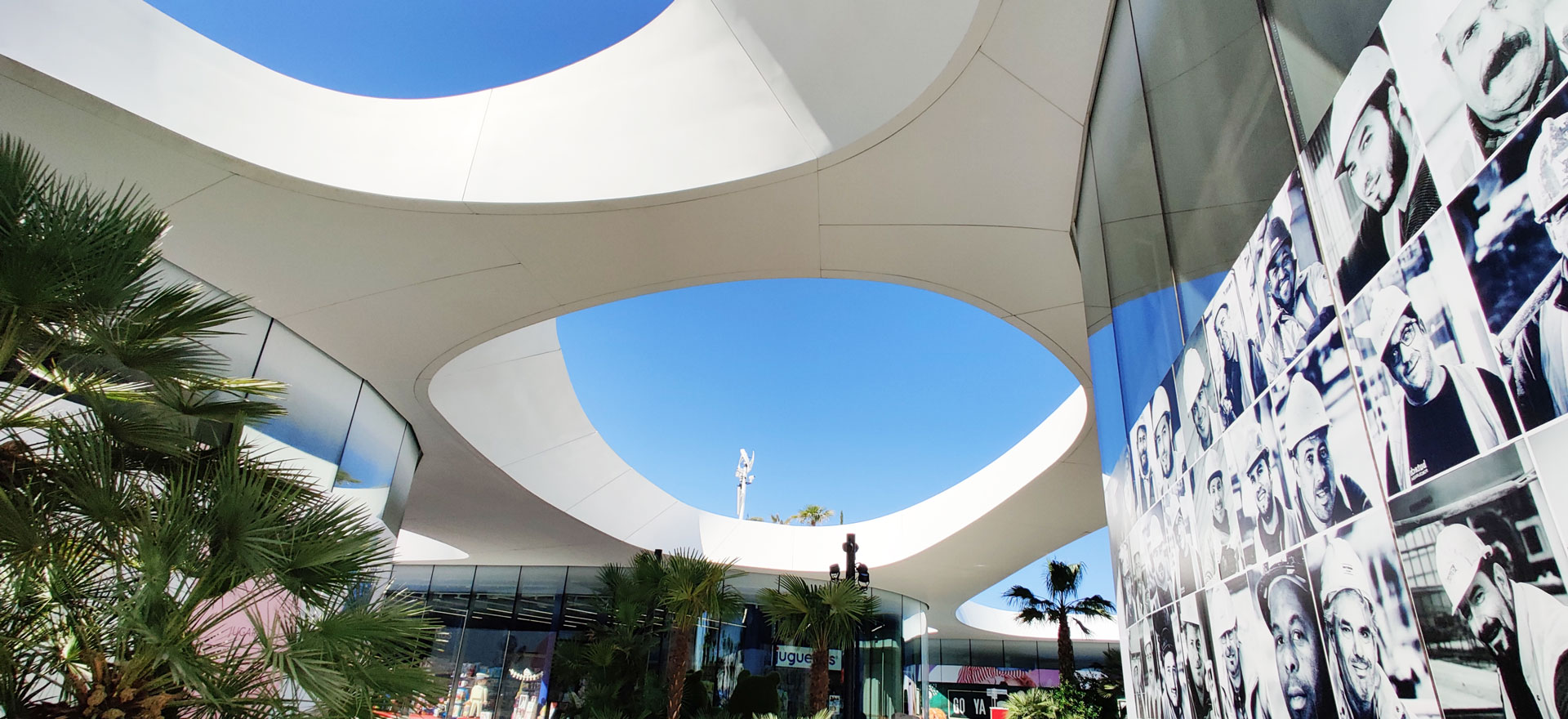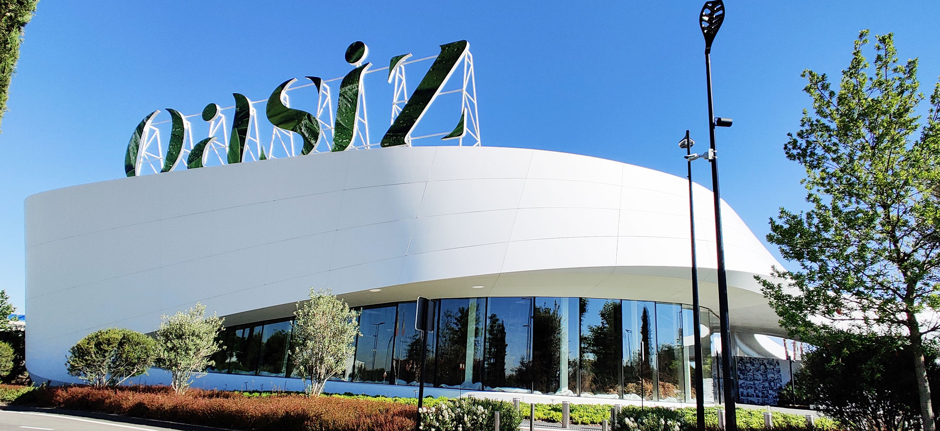 OpenSky is the largest open-air mall in Madrid, offering 75,000 sqm of retail, restaurants, cinemas, and leisure spaces. The project is organized into several volumes unified by a curved white canopy that connects all buildings and shelters the entrances and pedestrian areas. It features the largest parametric prefabricated façade ever built in Spain, with a total length of 3.5 km and a surface area of 23,000 sqm. The façade is divided into modules ranging from 1.20 m to 3.50 m in length, which at different areas function as ceilings, cornices, façade elements, and even railings. There are 2,031 unique modules, each defined by specific parameters, distinct substructures, and tailored auxiliary components. All elements required to define each module — including the steel structure, L-profiles, joints, screws, and even the geometry itself — are generated through algorithmic processes. This workflow avoids repetitive manual tasks while enabling rigorous project control through naming conventions and production protocols essential for industrial manufacturing.