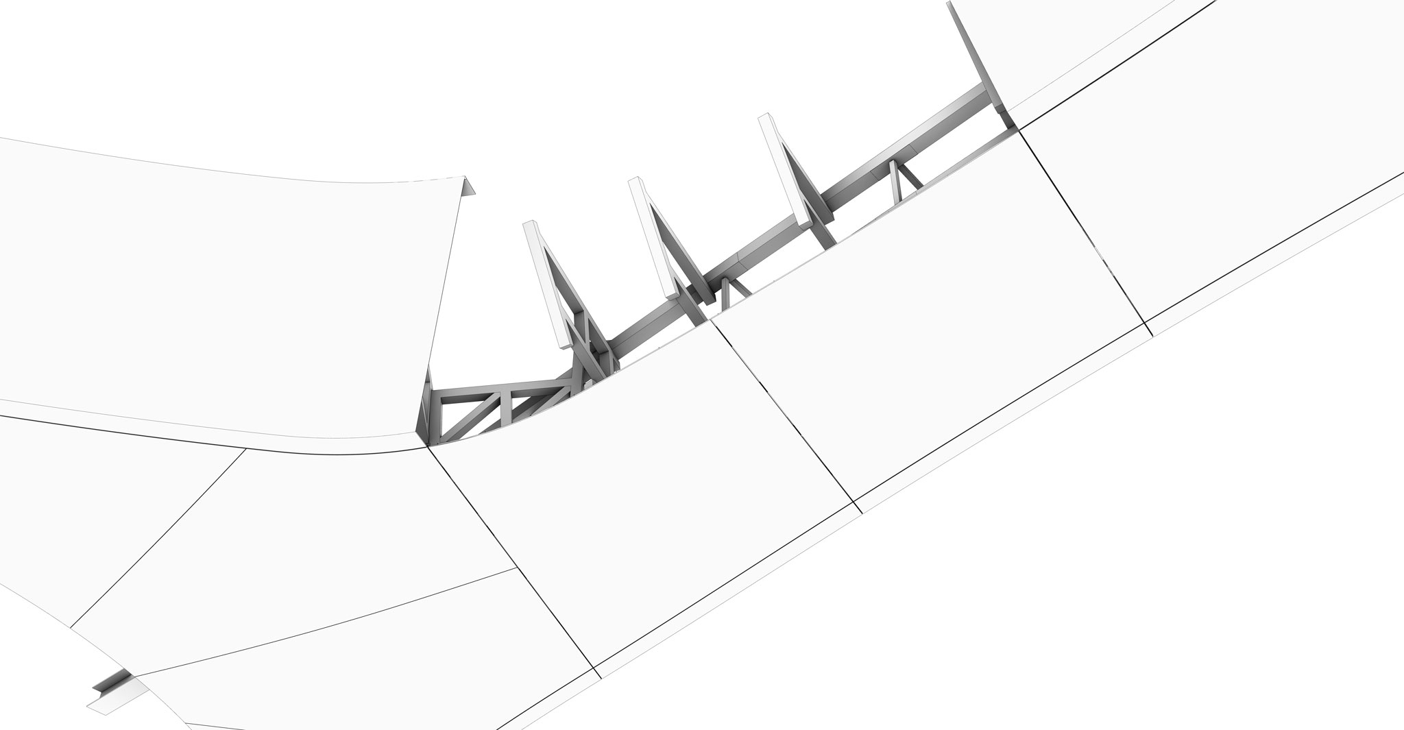 - Coordination of multiple 3D models (structural, MEP, façade, etc.), including clash detection, reporting, issue tracking, and coordination with third-party suppliers.Redefinition, optimization, and rationalization of the original geometry to enable industrialized façade manufacturing using digital tools.