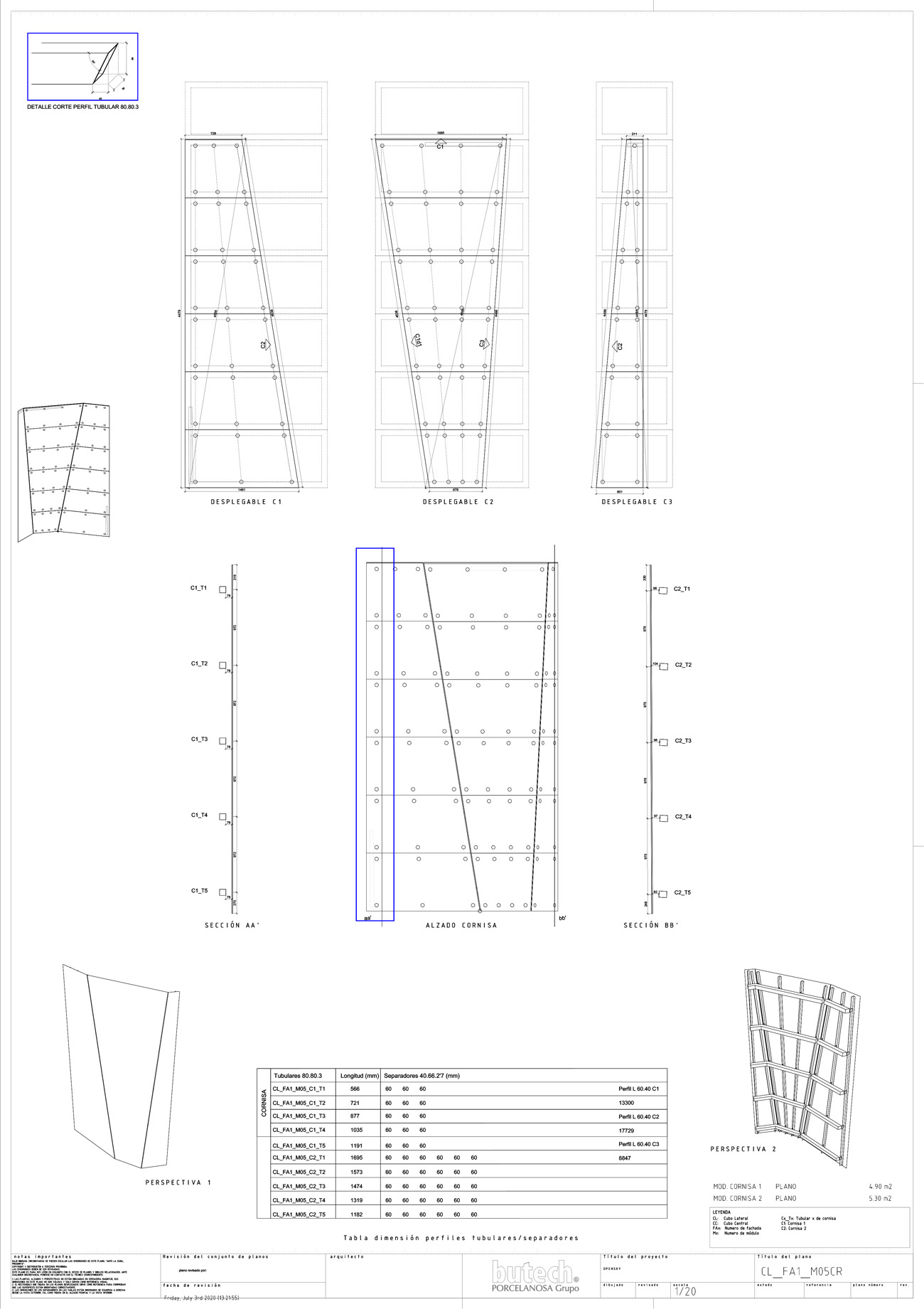 Preparation of shop drawings for the manufacturing and assembly of the façade modules using 1 cm Krion panels.