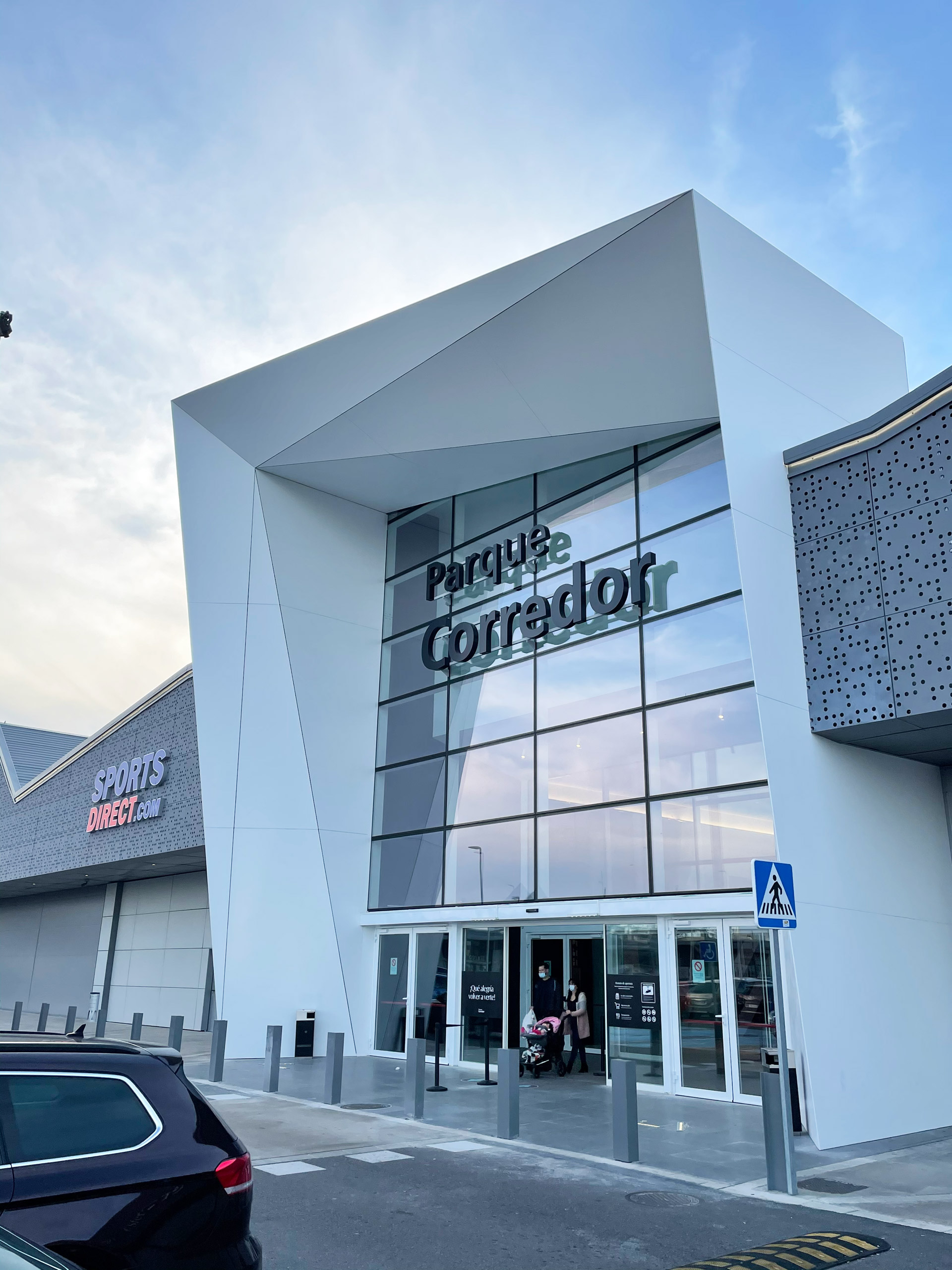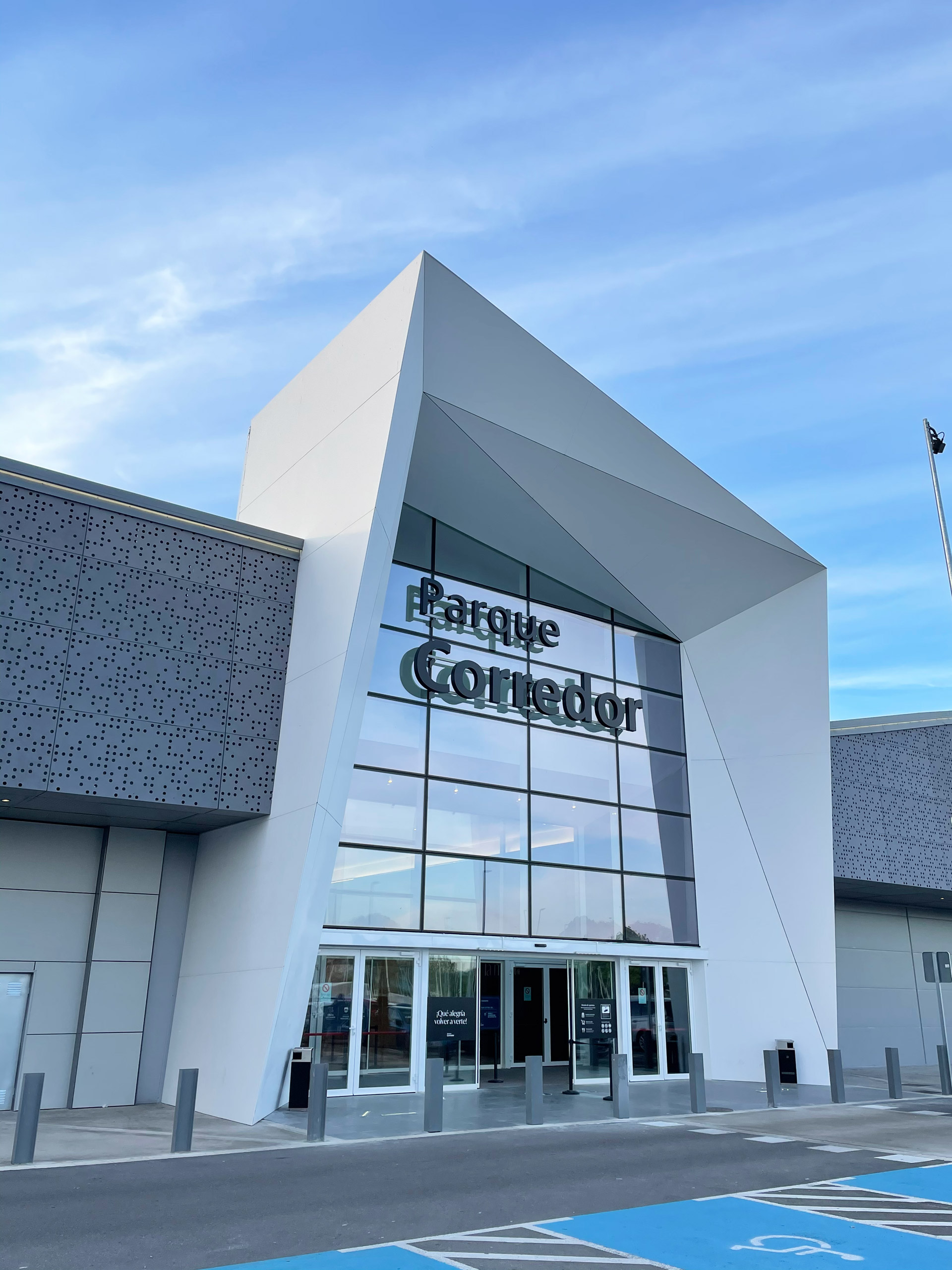 The façade intervention at Parque Corredor Shopping Centre is defined through a set of 135 Krion panels integrated into the project’s façade geometry, forming an architectural layer that responds to the scale, alignment, and functional conditions of the building. The façade design balances aesthetic coherence and construction efficiency while contributing to the overall visual identity of the retail environment.