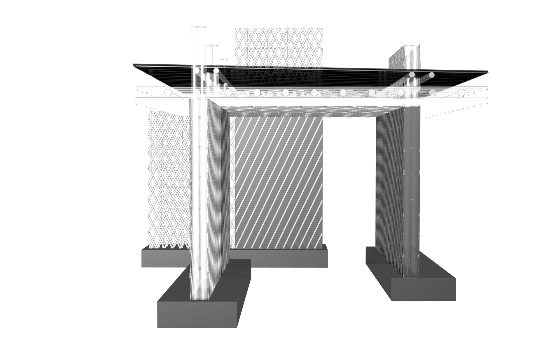 The process combined an overhead laser projection with a camera-based detection system to recognise the positioning of the split bamboo elements, allowing the construction sequence to be incrementally guided and adjusted. This hybrid approach bridges manual craftsmanship and digital assistance, demonstrating how minimal technological interventions can enhance precision, repeatability, and learning without replacing local construction practices.