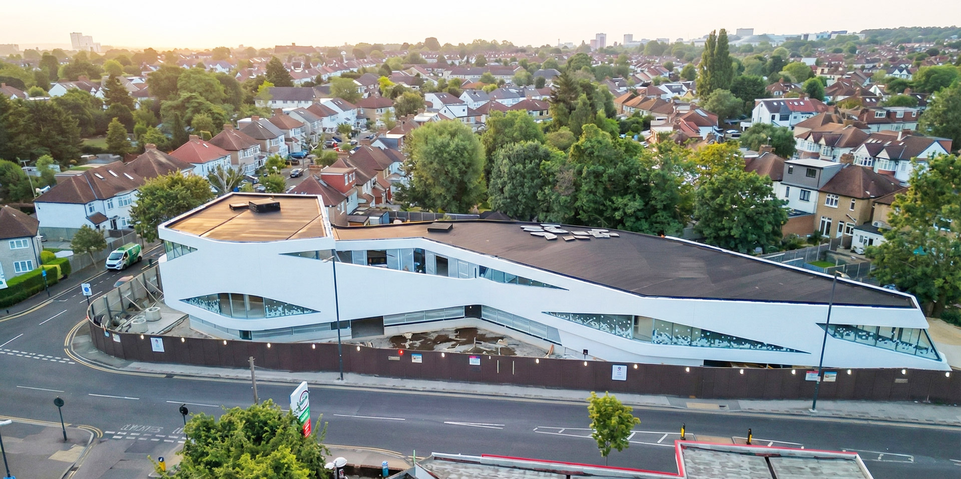 The Salaam Centre incorporates a prefabricated façade system of 553 Krion panels, with a total surface area of approximately 1,924 sqm. The façade is conceived as a continuous architectural envelope in which geometry, structure, and enclosure are resolved through a coordinated modular system designed for industrial production and precise on-site assembly.